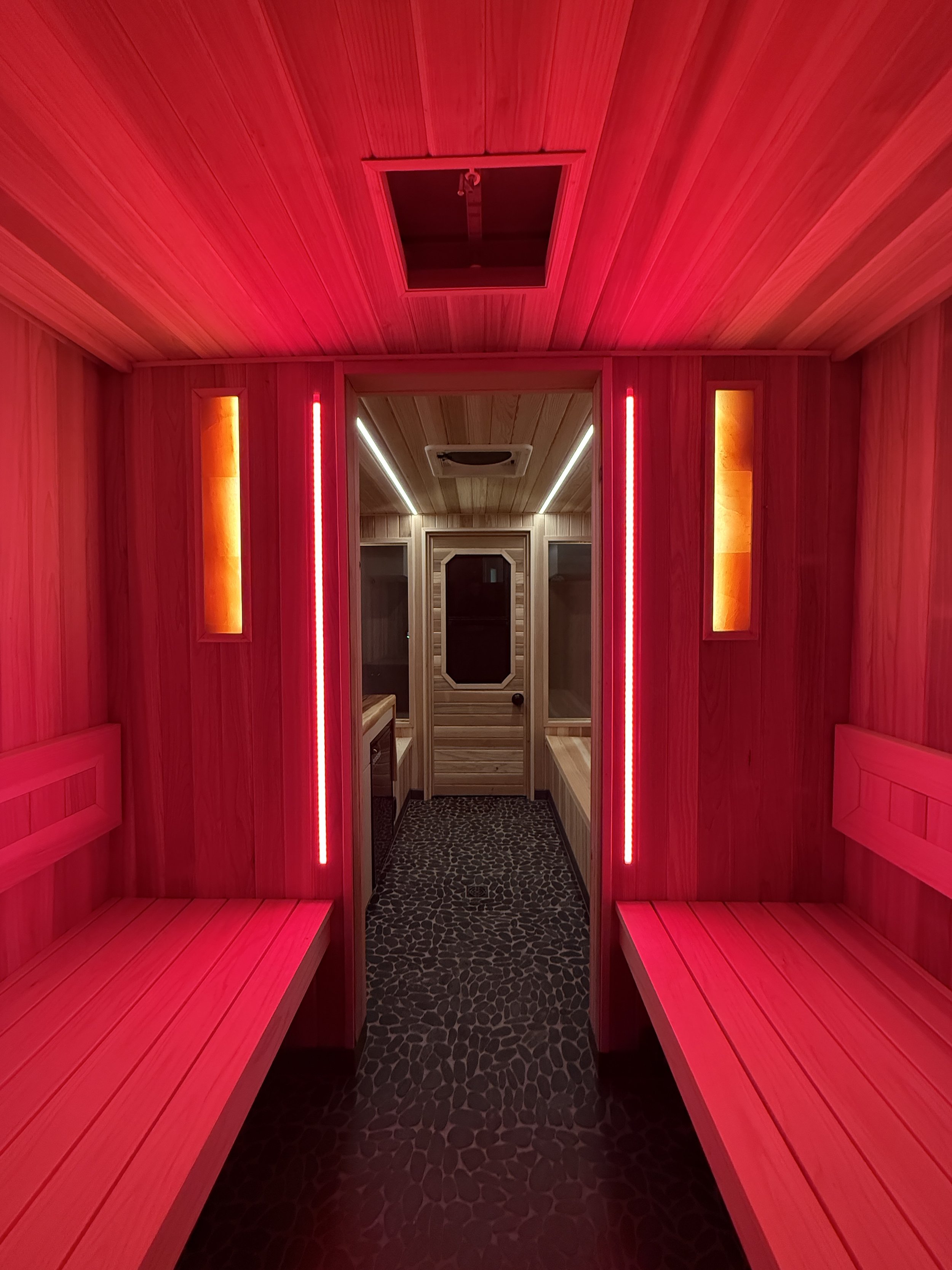 If the heated rocks, steam and aromatherapy were not enough, Trailhead saunas offers Himalayan salt lamps and true near red light therapy as a total immersive spa experience and full spectrum healing benefits.